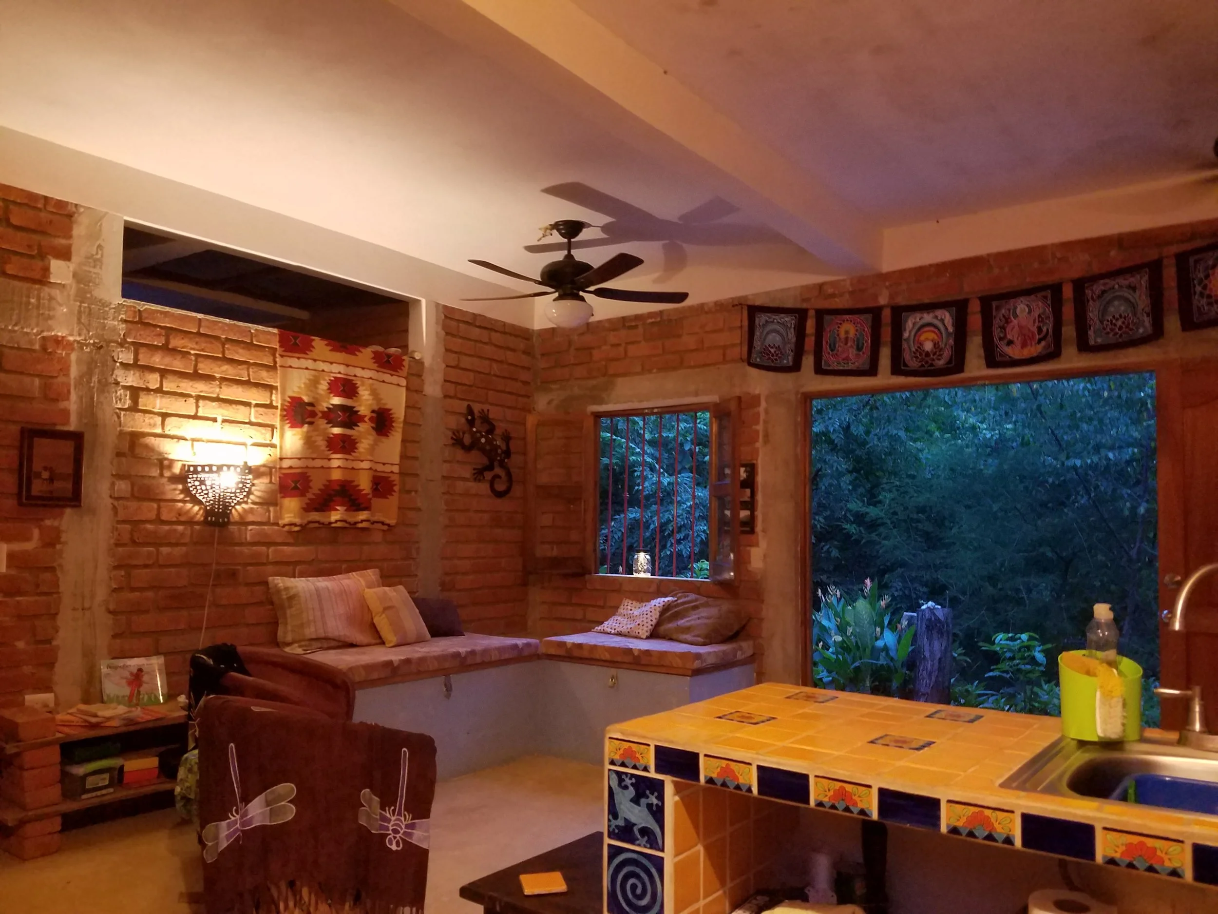The spacious great room includes a fully furnished kitchen, a living area with a comfortable twin size bed and built in bench which also provides a locked storage unit for your valuables. Ceiling fans and cross-ventilation help to cool the casa especially during the hotter summer months (June to September).